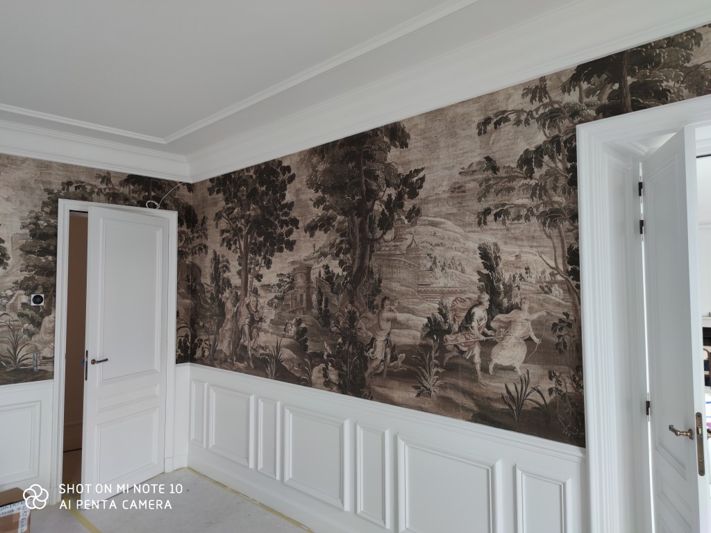 Nous avons travaillé avec les revêtements les plus nobles : Le Gournay, Zuber, Pierre Frey, NOBILIS Paris, ÉLITIS, ARTE, Ateliers Berger, Atelier de la Torre, Sanfoot, Watts 1874.